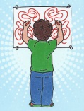 - Eine 8er Schleife auf den Boden kleben. Die Bahn kann nachgekrabbelt oder gegangen werden.
