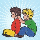 - Hintereinander sitzend in einer Schlange, gegenseitig massieren. Zuerst die Schultern, dann die Schultern, zum Schluss den Nacken