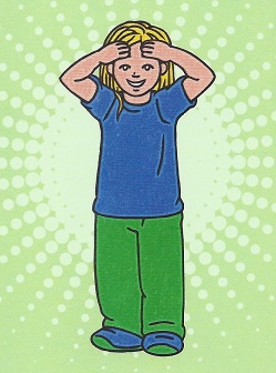 - Zur Vereinfachung kann man die ganze Hand auf die Stirne legen.