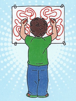 - Mit beiden Armen gleichzeitig spiegelbildlich gleiche Formen malen (ein Orchester dirigieren)