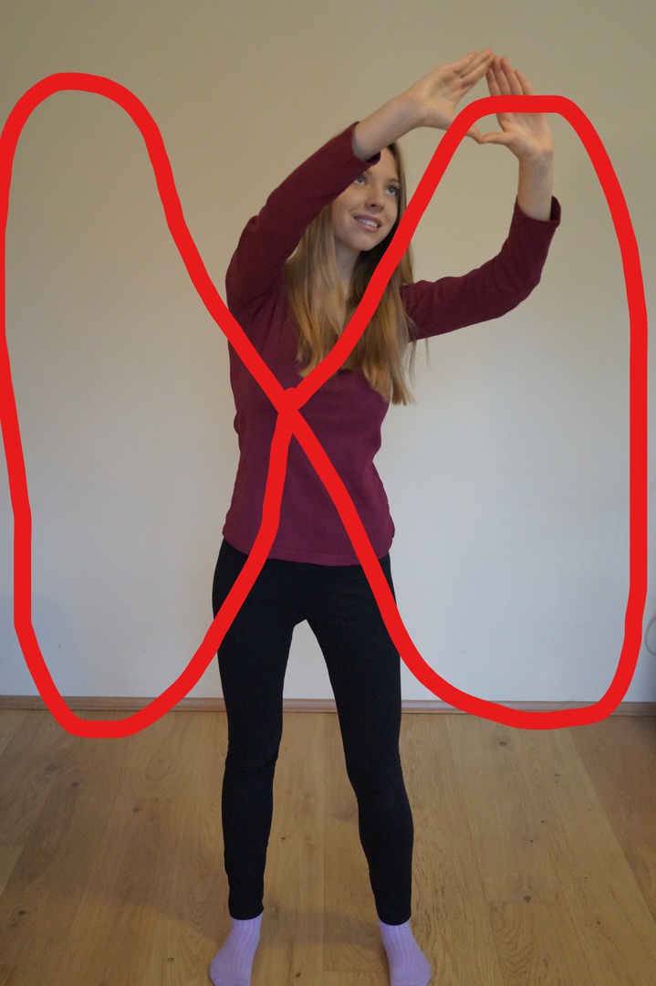- Daumen und Zeigefinger bilden ein Dreieck;