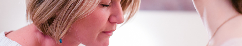 Mit den Fingern beider Hände sanft die Punkte auf der Stirn (Stirnbeinhöcker) halten.